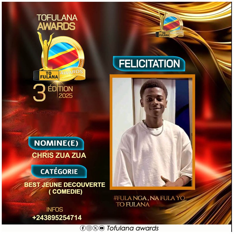TOFULANA AWARDS (Une structure qui socioculturelle qui prime les valeurs) :Téléphone : +243819295977 E-mail : samuelndjoli05@gmail.com