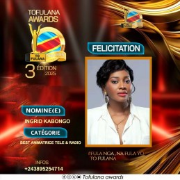 TOFULANA AWARDS 3ème édition/025 NOMINEE INGRID KABONGO : BEST ANIMATEUR TELE & RADIO