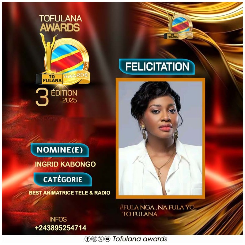 TOFULANA AWARDS (Une structure qui socioculturelle qui prime les valeurs) :Téléphone : +243819295977 E-mail : samuelndjoli05@gmail.com
