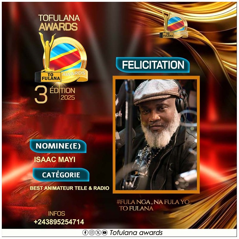 TOFULANA AWARDS (Une structure qui socioculturelle qui prime les valeurs) :Téléphone : +243819295977 E-mail : samuelndjoli05@gmail.com