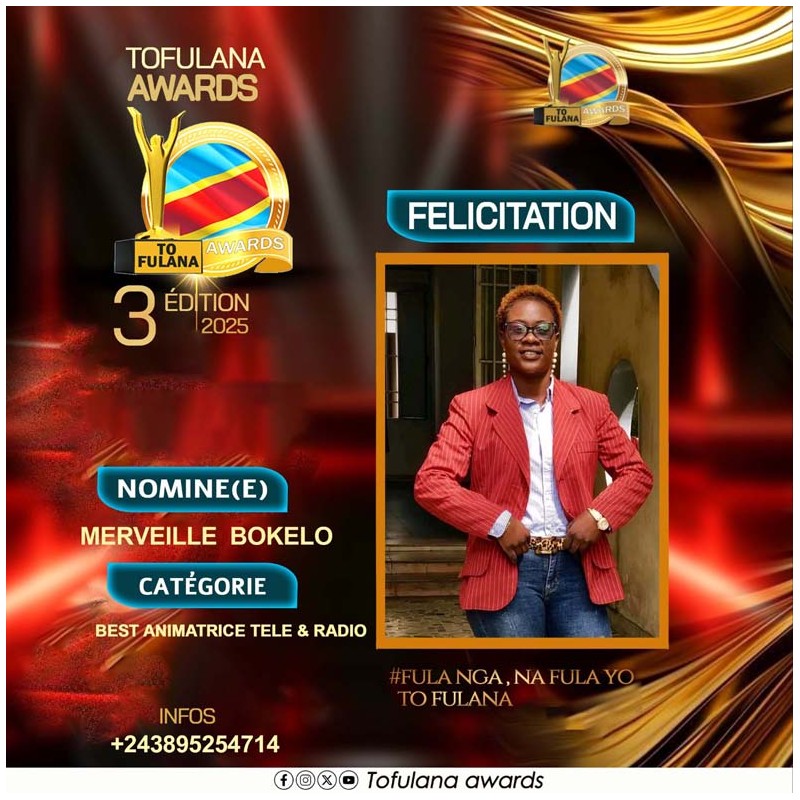 TOFULANA AWARDS (Une structure qui socioculturelle qui prime les valeurs) :Téléphone : +243819295977 E-mail : samuelndjoli05@gmail.com