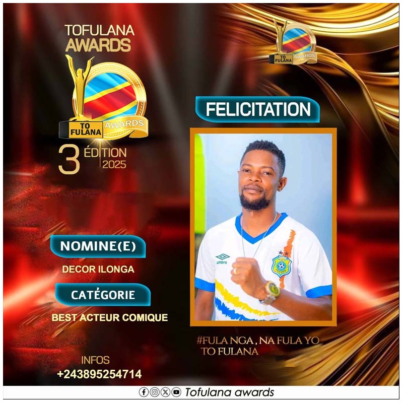 TOFULANA AWARDS (Une structure qui socioculturelle qui prime les valeurs) :Téléphone : +243819295977 E-mail : samuelndjoli05@gmail.com
