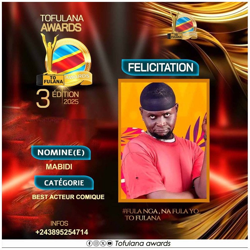 TOFULANA AWARDS (Une structure qui socioculturelle qui prime les valeurs) :Téléphone : +243819295977 E-mail : samuelndjoli05@gmail.com