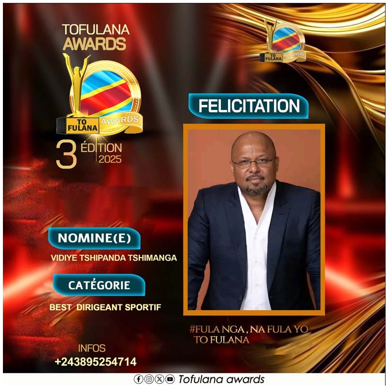 TOFULANA AWARDS (Une structure qui socioculturelle qui prime les valeurs) :Téléphone : +243819295977 E-mail : samuelndjoli05@gmail.com