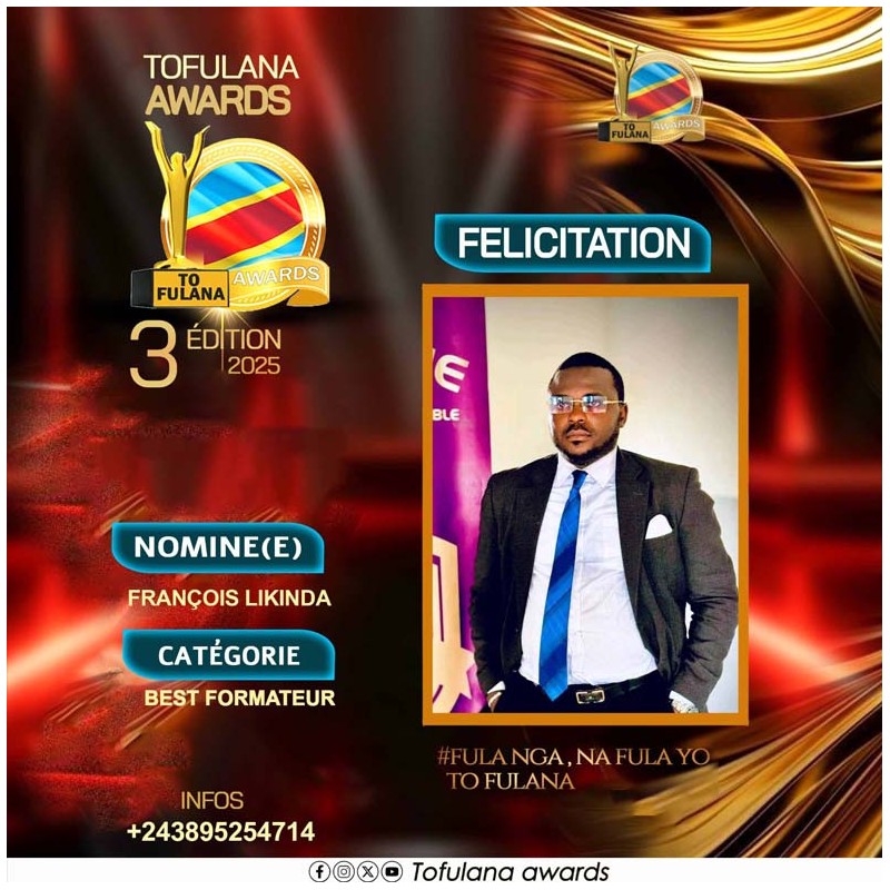 TOFULANA AWARDS (Une structure qui socioculturelle qui prime les valeurs) :Téléphone : +243819295977 E-mail : samuelndjoli05@gmail.com