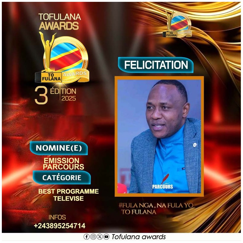 TOFULANA AWARDS (Une structure qui socioculturelle qui prime les valeurs) :Téléphone : +243819295977 E-mail : samuelndjoli05@gmail.com