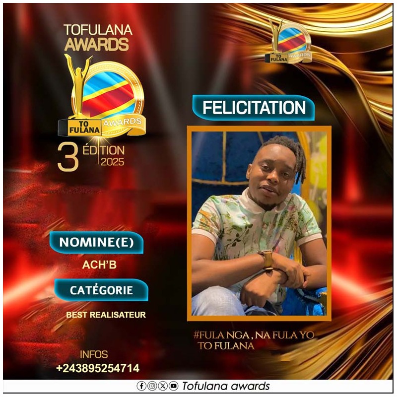 TOFULANA AWARDS (Une structure qui socioculturelle qui prime les valeurs) :Téléphone : +243819295977 E-mail : samuelndjoli05@gmail.com