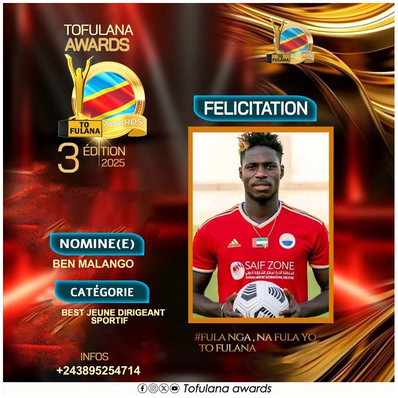 TOFULANA AWARDS (Une structure qui socioculturelle qui prime les valeurs) :Téléphone : +243819295977 E-mail : samuelndjoli05@gmail.com