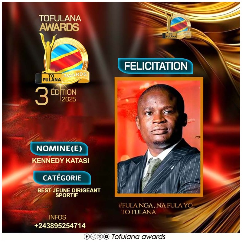 TOFULANA AWARDS (Une structure qui socioculturelle qui prime les valeurs) :Téléphone : +243819295977 E-mail : samuelndjoli05@gmail.com