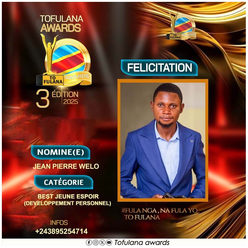 TOFULANA AWARDS (Une structure qui socioculturelle qui prime les valeurs) :Téléphone : +243819295977 E-mail : samuelndjoli05@gmail.com