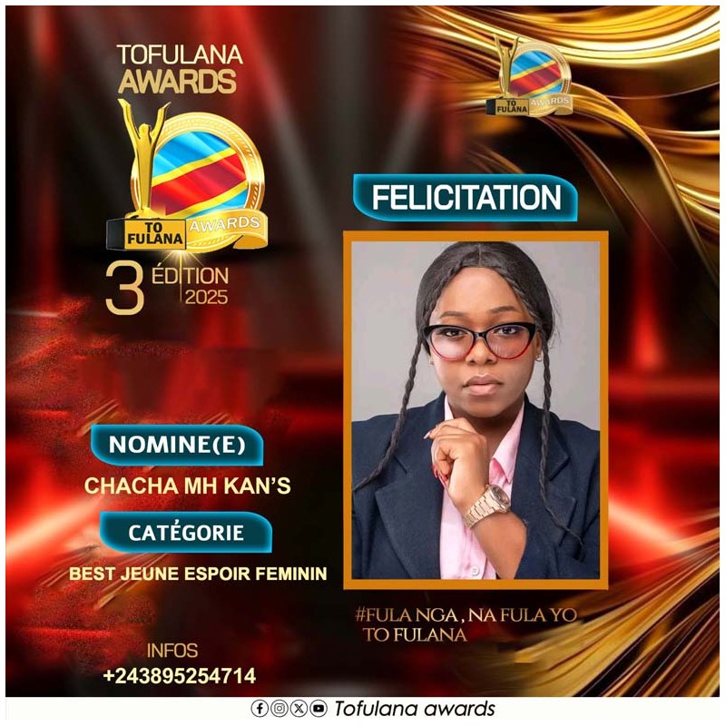 TOFULANA AWARDS (Une structure qui socioculturelle qui prime les valeurs) :Téléphone : +243819295977 E-mail : samuelndjoli05@gmail.com