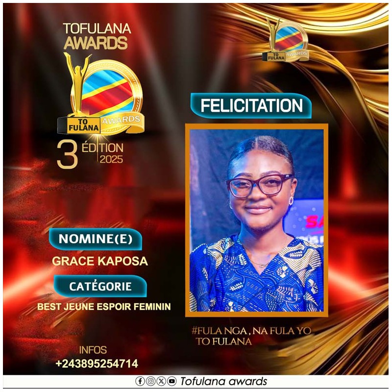 TOFULANA AWARDS (Une structure qui socioculturelle qui prime les valeurs) :Téléphone : +243819295977 E-mail : samuelndjoli05@gmail.com