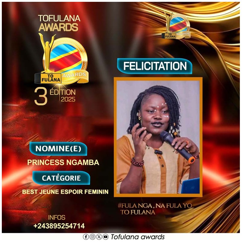 TOFULANA AWARDS (Une structure qui socioculturelle qui prime les valeurs) :Téléphone : +243819295977 E-mail : samuelndjoli05@gmail.com
