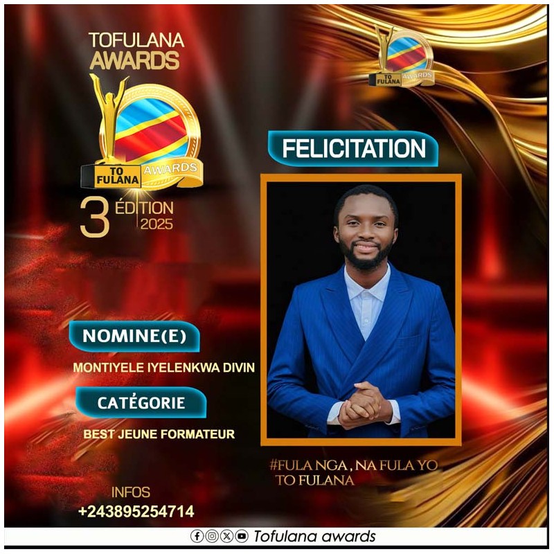 TOFULANA AWARDS (Une structure qui socioculturelle qui prime les valeurs) :Téléphone : +243819295977 E-mail : samuelndjoli05@gmail.com