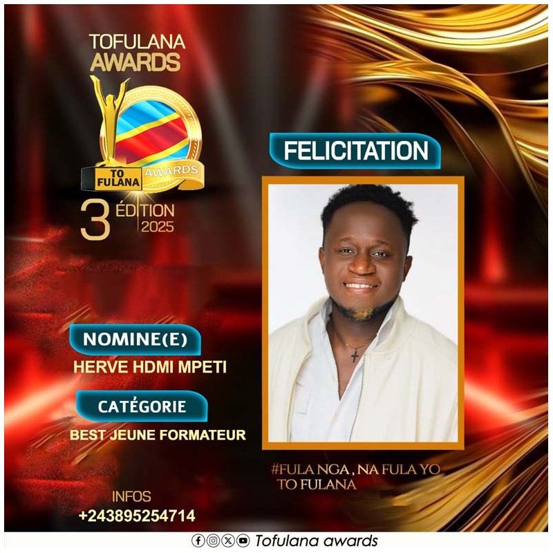 TOFULANA AWARDS (Une structure qui socioculturelle qui prime les valeurs) :Téléphone : +243819295977 E-mail : samuelndjoli05@gmail.com