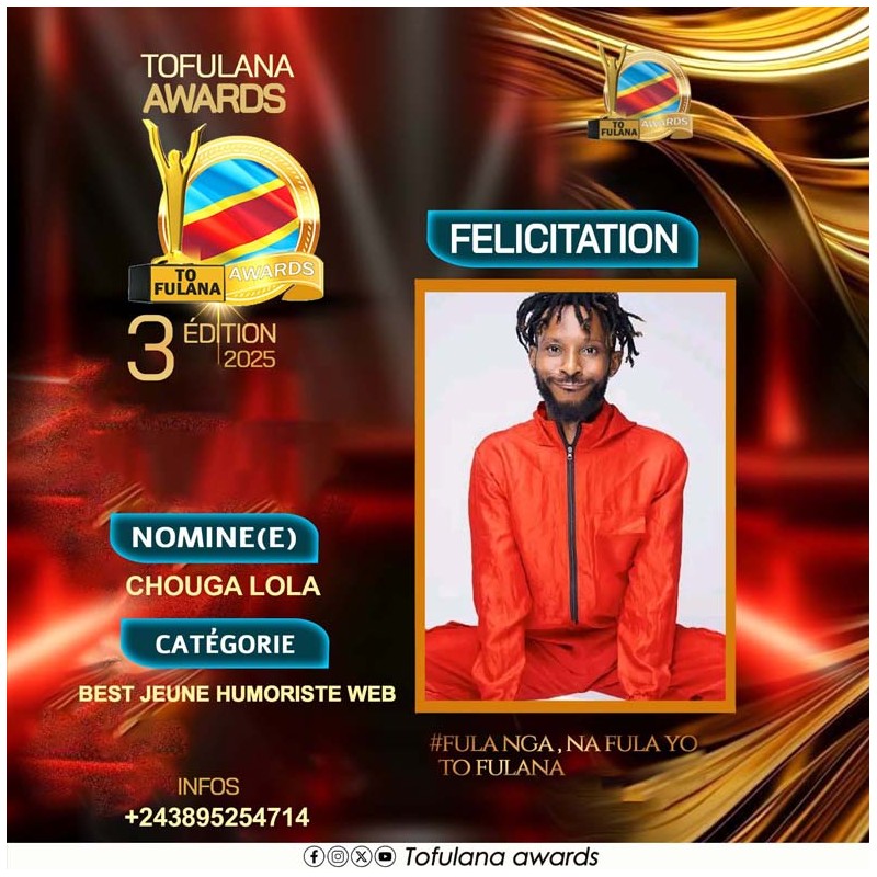 TOFULANA AWARDS (Une structure qui socioculturelle qui prime les valeurs) :Téléphone : +243819295977 E-mail : samuelndjoli05@gmail.com