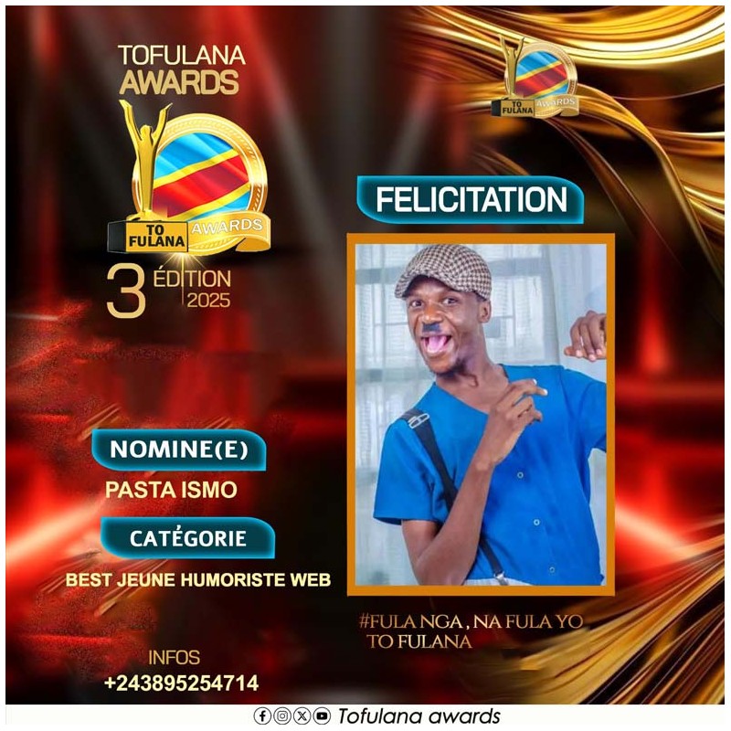 TOFULANA AWARDS (Une structure qui socioculturelle qui prime les valeurs) :Téléphone : +243819295977 E-mail : samuelndjoli05@gmail.com