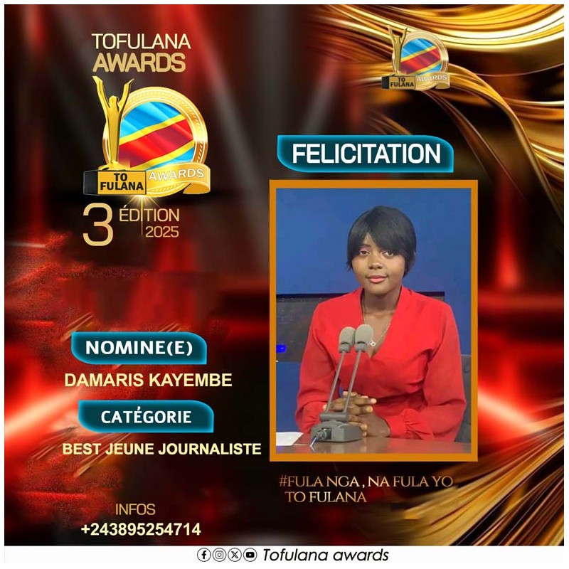 TOFULANA AWARDS (Une structure qui socioculturelle qui prime les valeurs) :Téléphone : +243819295977 E-mail : samuelndjoli05@gmail.com