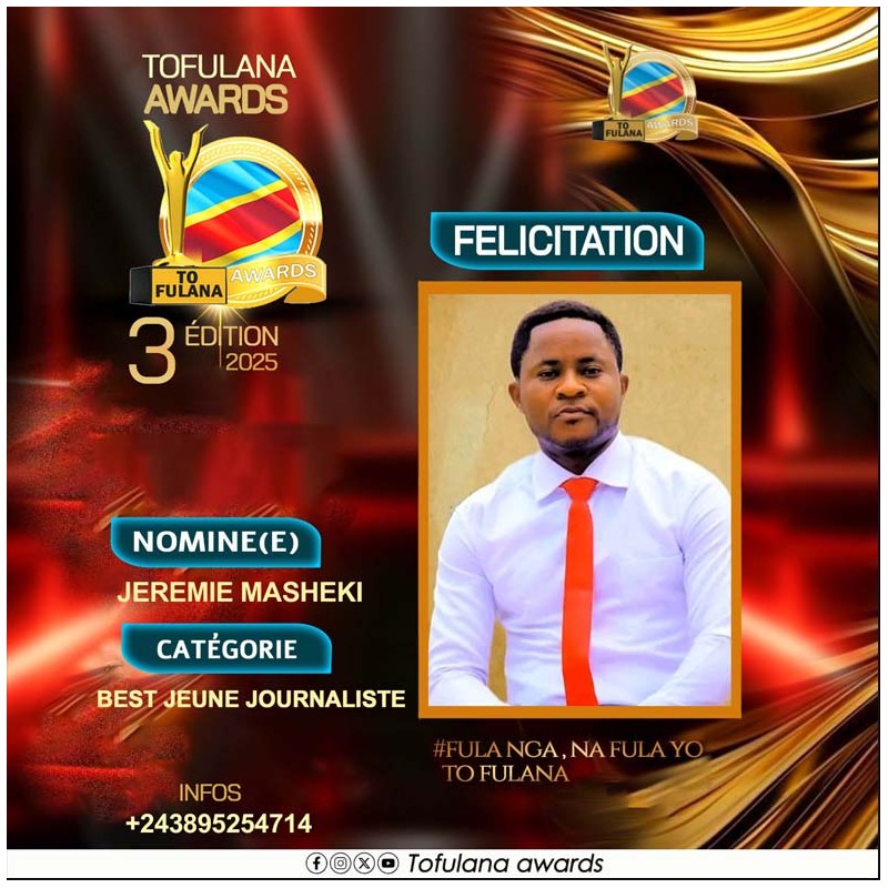 TOFULANA AWARDS 3ème édition/025 NOMINE JEREMIE MASHEKI : BEST JEUNE JOURNALISTE