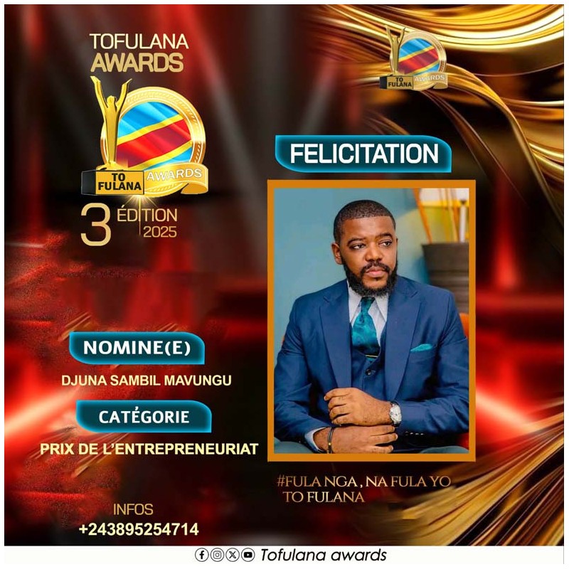 TOFULANA AWARDS (Une structure qui socioculturelle qui prime les valeurs) :Téléphone : +243819295977 E-mail : samuelndjoli05@gmail.com