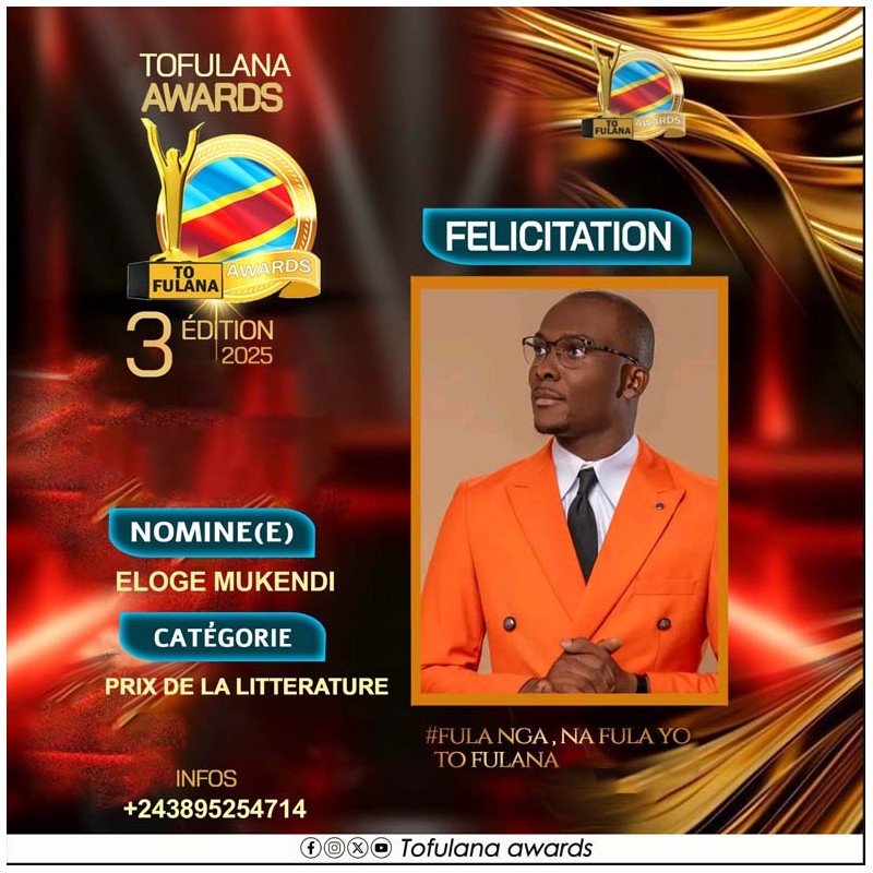 TOFULANA AWARDS (Une structure qui socioculturelle qui prime les valeurs) :Téléphone : +243819295977 E-mail : samuelndjoli05@gmail.com