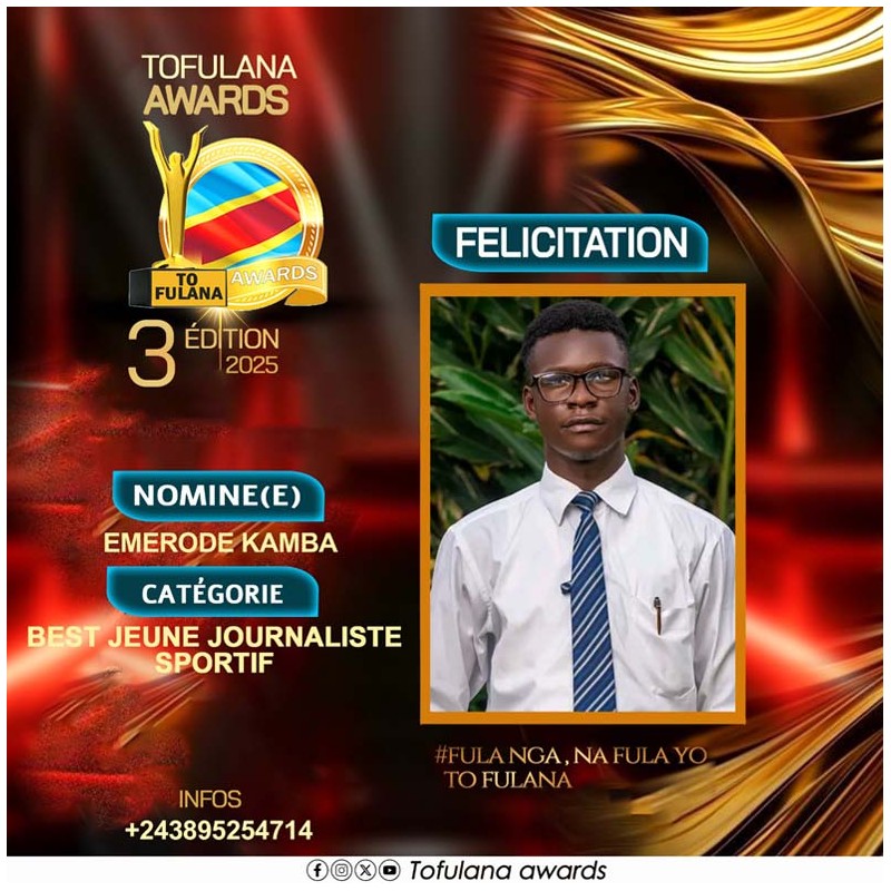TOFULANA AWARDS (Une structure qui socioculturelle qui prime les valeurs) :Téléphone : +243819295977 E-mail : samuelndjoli05@gmail.com