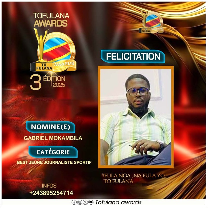TOFULANA AWARDS (Une structure qui socioculturelle qui prime les valeurs) :Téléphone : +243819295977 E-mail : samuelndjoli05@gmail.com