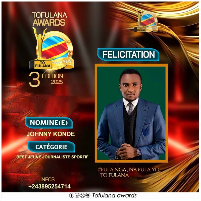 TOFULANA AWARDS (Une structure qui socioculturelle qui prime les valeurs) :Téléphone : +243819295977 E-mail : samuelndjoli05@gmail.com