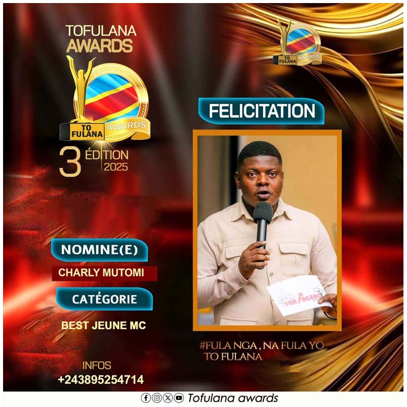 TOFULANA AWARDS (Une structure qui socioculturelle qui prime les valeurs) :Téléphone : +243819295977 E-mail : samuelndjoli05@gmail.com