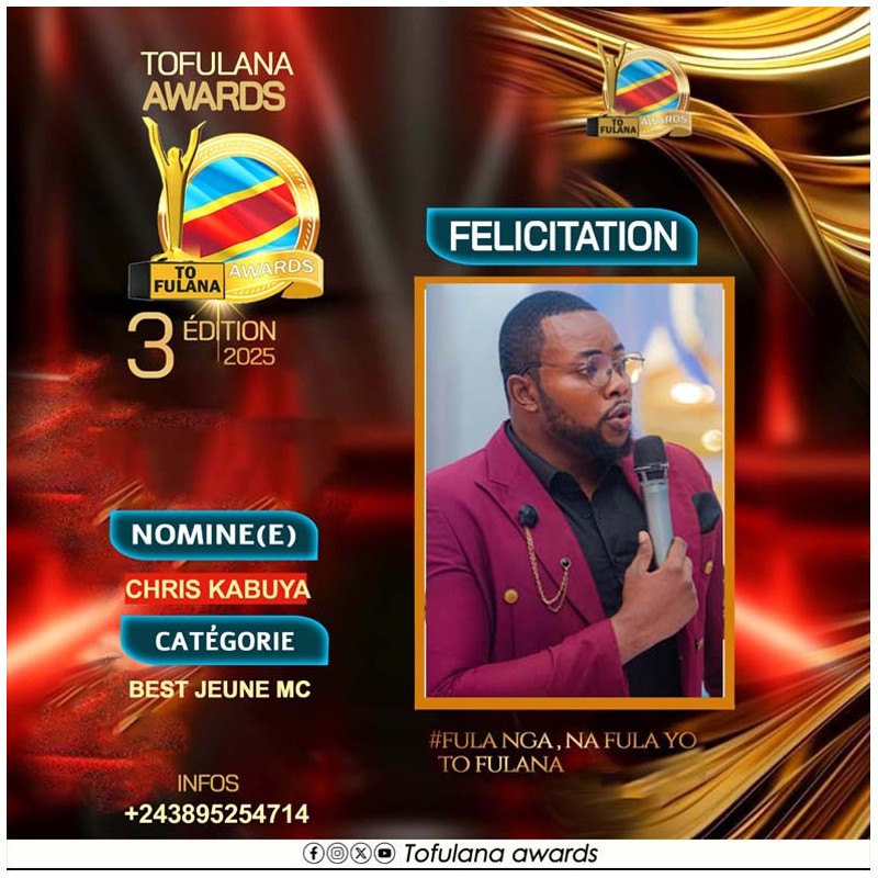 TOFULANA AWARDS (Une structure qui socioculturelle qui prime les valeurs) :Téléphone : +243819295977 E-mail : samuelndjoli05@gmail.com