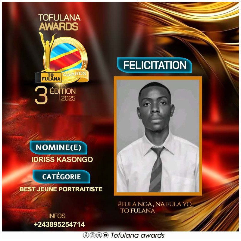 TOFULANA AWARDS (Une structure qui socioculturelle qui prime les valeurs) :Téléphone : +243819295977 E-mail : samuelndjoli05@gmail.com
