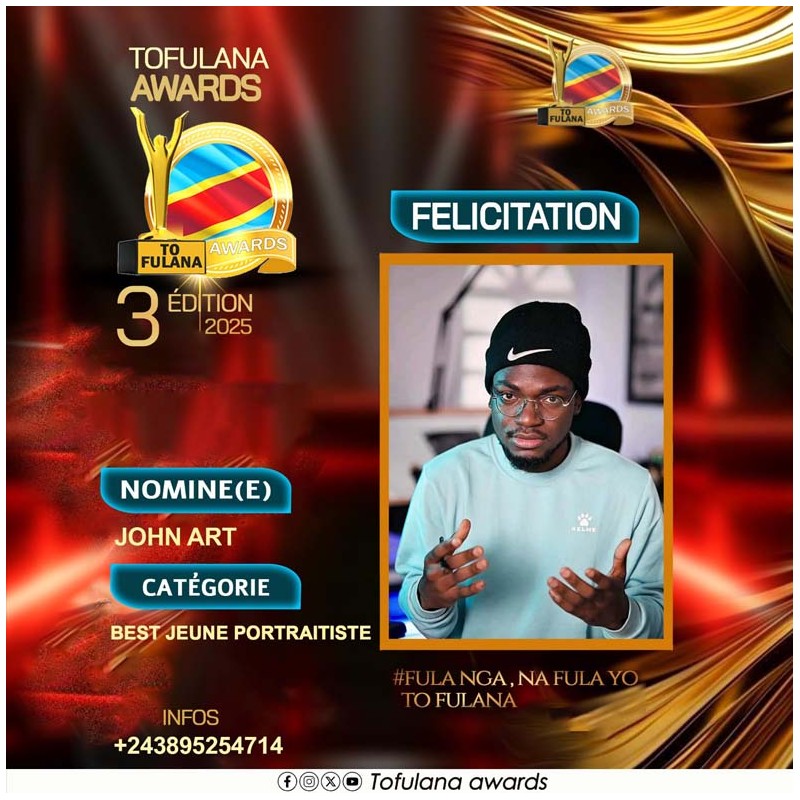 TOFULANA AWARDS (Une structure qui socioculturelle qui prime les valeurs) :Téléphone : +243819295977 E-mail : samuelndjoli05@gmail.com