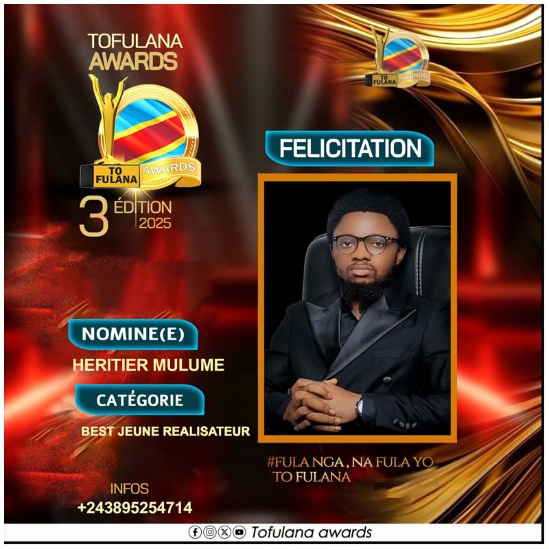 TOFULANA AWARDS (Une structure qui socioculturelle qui prime les valeurs) :Téléphone : +243819295977 E-mail : samuelndjoli05@gmail.com