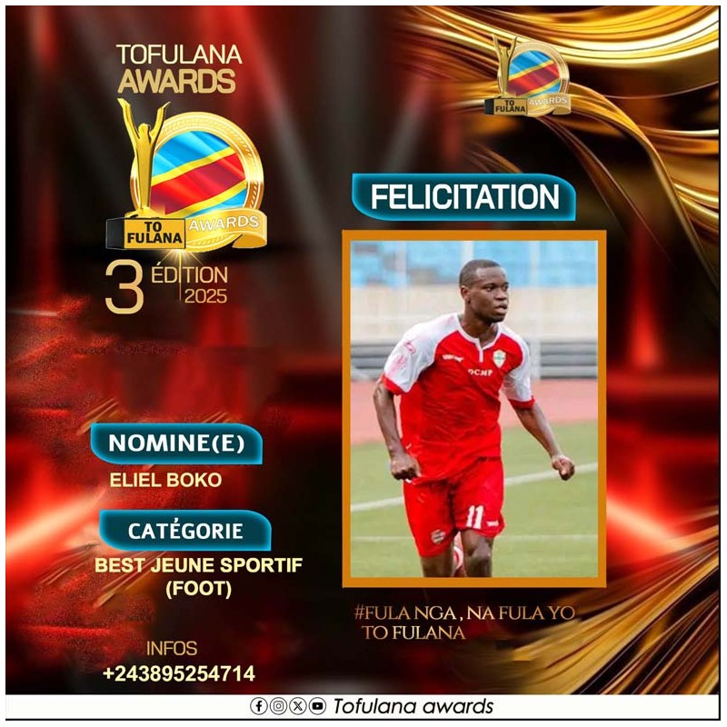 TOFULANA AWARDS (Une structure qui socioculturelle qui prime les valeurs) :Téléphone : +243819295977 E-mail : samuelndjoli05@gmail.com