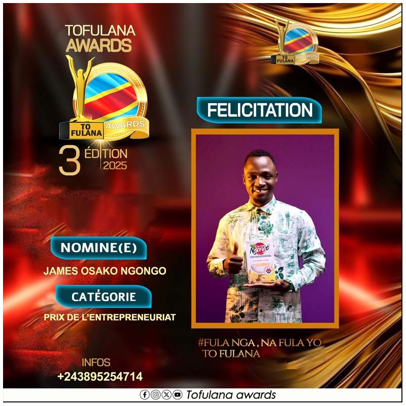 TOFULANA AWARDS (Une structure qui socioculturelle qui prime les valeurs) :Téléphone : +243819295977 E-mail : samuelndjoli05@gmail.com