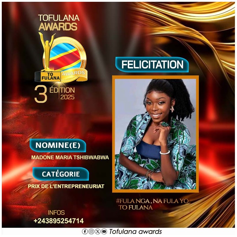 TOFULANA AWARDS (Une structure qui socioculturelle qui prime les valeurs) :Téléphone : +243819295977 E-mail : samuelndjoli05@gmail.com