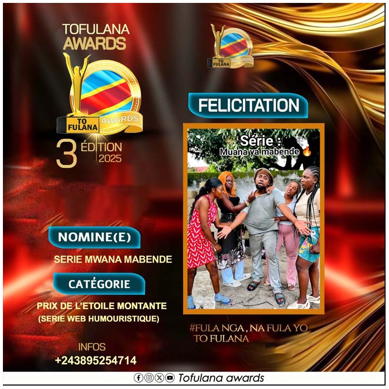 TOFULANA AWARDS (Une structure qui socioculturelle qui prime les valeurs) :Téléphone : +243819295977 E-mail : samuelndjoli05@gmail.com
