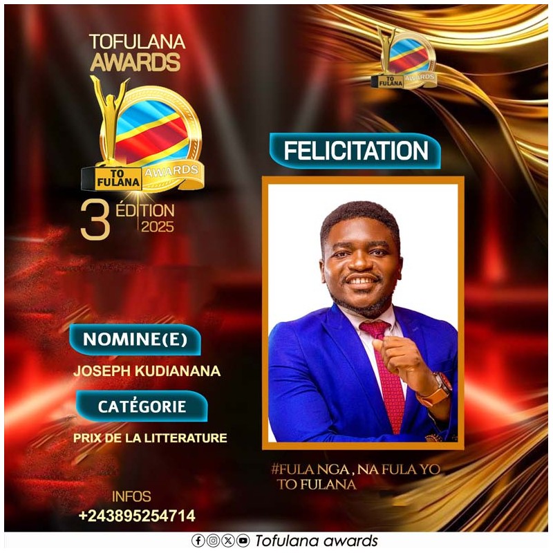TOFULANA AWARDS (Une structure qui socioculturelle qui prime les valeurs) :Téléphone : +243819295977 E-mail : samuelndjoli05@gmail.com
