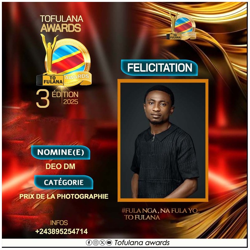 TOFULANA AWARDS (Une structure qui socioculturelle qui prime les valeurs) :Téléphone : +243819295977 E-mail : samuelndjoli05@gmail.com