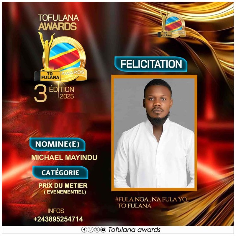 TOFULANA AWARDS (Une structure qui socioculturelle qui prime les valeurs) :Téléphone : +243819295977 E-mail : samuelndjoli05@gmail.com