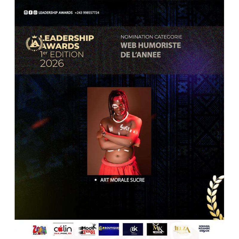 LEADERSHIP AWARDS 1ère édition/026 NOMINE ART MORALE SUCRE : WEB HUMORISTE D'AFRIQUE DE L'ANNEE