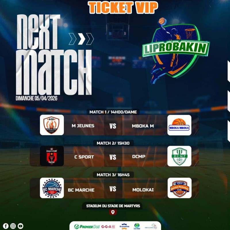 Dimanche, 12/04/026/Ticket VIP : de la 61ème édition du CHAMPIONNAT LIPROBAKIN. Ticket 10$. Lieu : Stadium du Stade de Martyrs/Kinshasa. A partir de 14h00. Contact Organisation : +24382 83 02 505