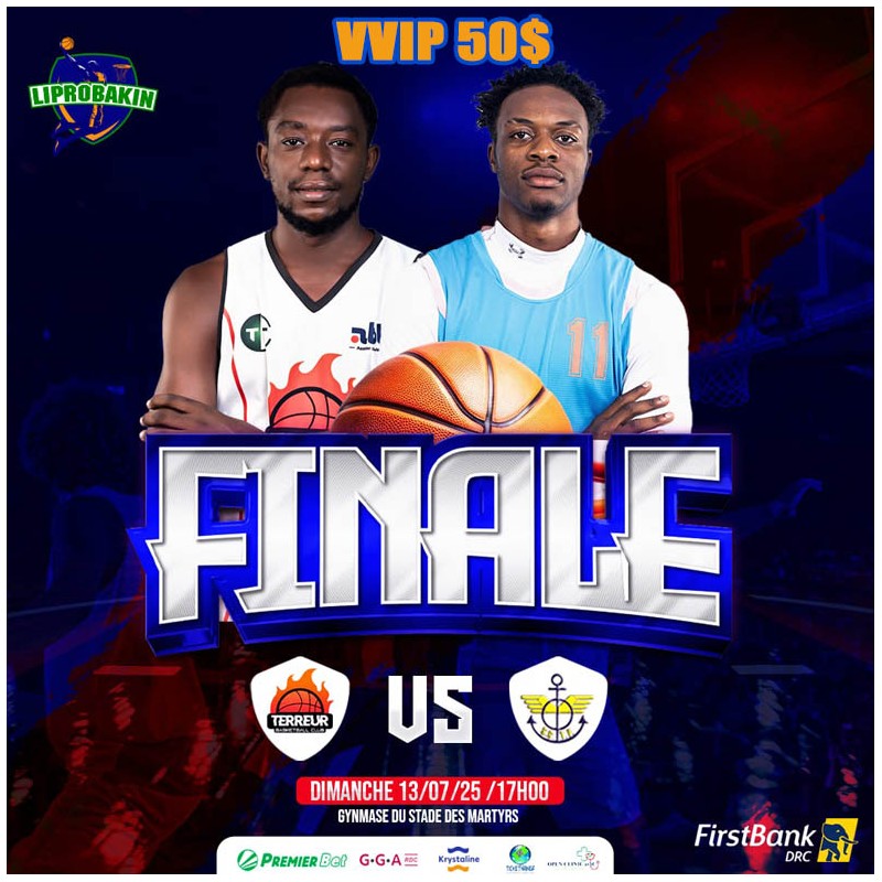 Dim, 13/07/025/Ticket VVIP : Finale de la 60ème édition du CHAMPIONNAT LIPROBAKIN. Ticket 50$. Lieu : Stadium de Basketball du Stade de Martyrs/Kinshasa. A partir de 15h00.