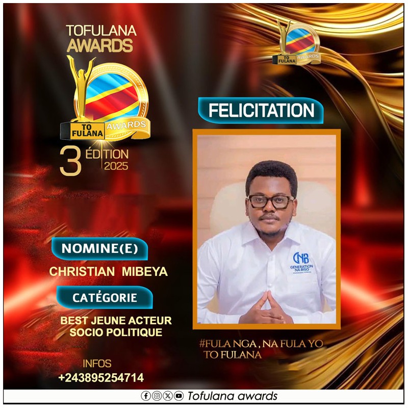 TOFULANA AWARDS (Une structure qui socioculturelle qui prime les valeurs) :Téléphone : +243819295977 E-mail : samuelndjoli05@gmail.com