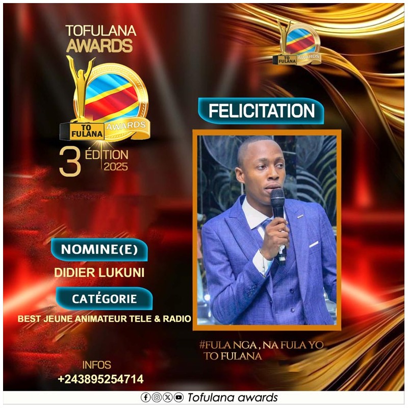 TOFULANA AWARDS (Une structure qui socioculturelle qui prime les valeurs) :Téléphone : +243819295977 E-mail : samuelndjoli05@gmail.com