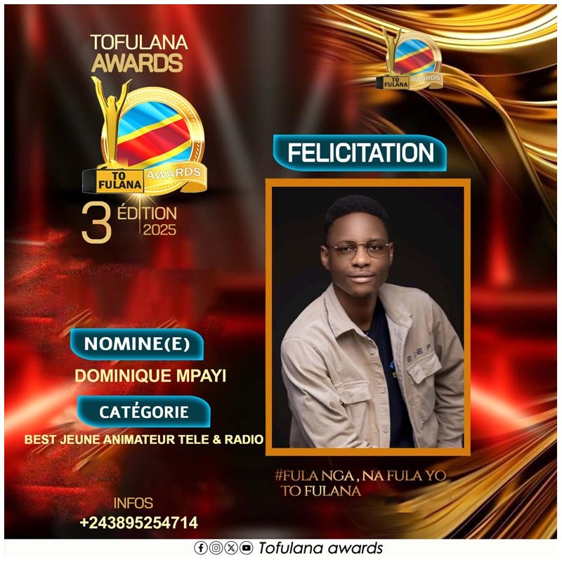 TOFULANA AWARDS (Une structure qui socioculturelle qui prime les valeurs) :Téléphone : +243819295977 E-mail : samuelndjoli05@gmail.com