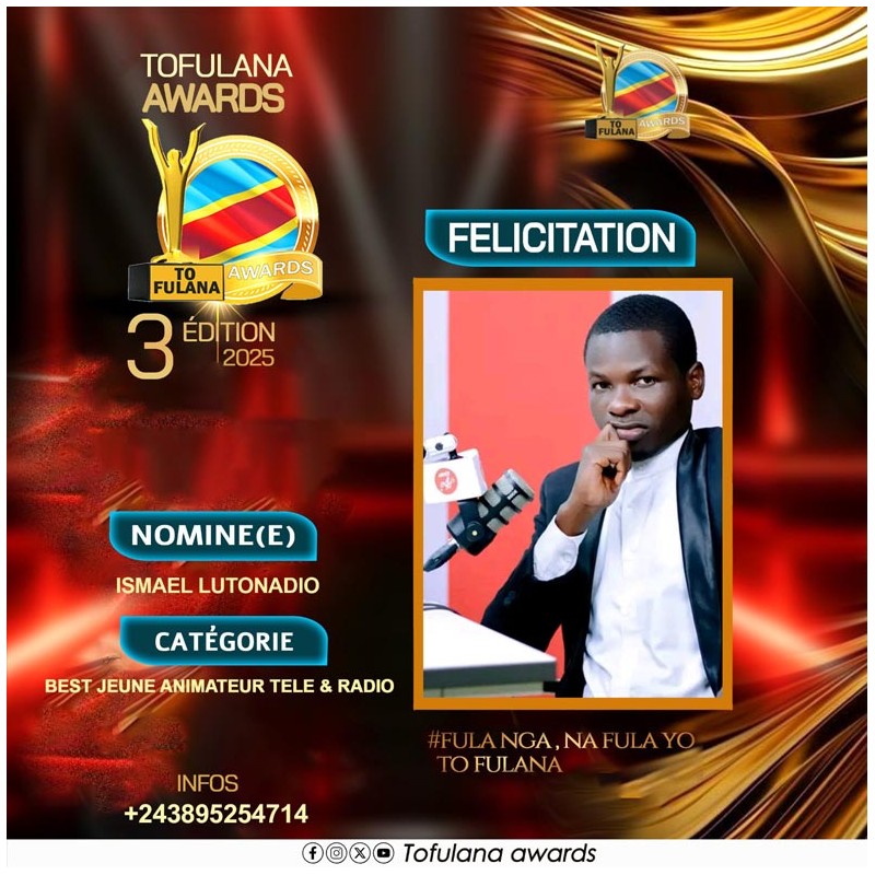TOFULANA AWARDS (Une structure qui socioculturelle qui prime les valeurs) :Téléphone : +243819295977 E-mail : samuelndjoli05@gmail.com