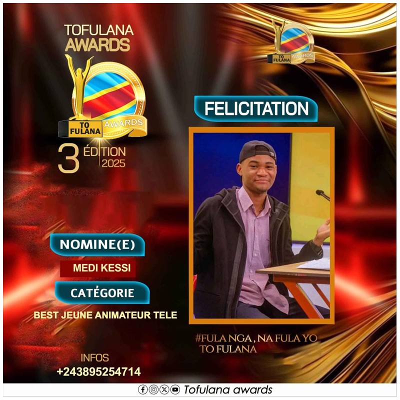 TOFULANA AWARDS (Une structure qui socioculturelle qui prime les valeurs) :Téléphone : +243819295977 E-mail : samuelndjoli05@gmail.com