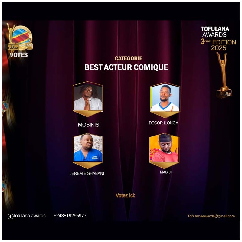 TOFULANA AWARDS (Une structure qui socioculturelle qui prime les valeurs) :Téléphone : +243819295977  E-mail : samuelndjoli05@gmail.com