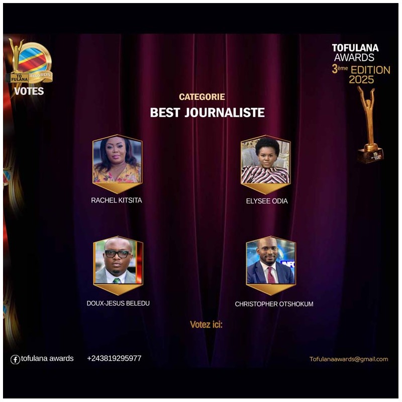 TOFULANA AWARDS (Une structure qui socioculturelle qui prime les valeurs) :Téléphone : +243819295977  E-mail : samuelndjoli05@gmail.com